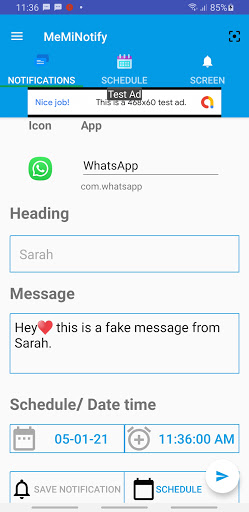 MeMi Notify is an app that lets you create custom Android notifications in the notification bar for a quick or scheduled reminder. It can be used to remind you of dates, tasks or other things you need to be reminded of. You have numerous possibilities to individualize the notification. It can have a chosen icon, can open a different app, can have an alarm.