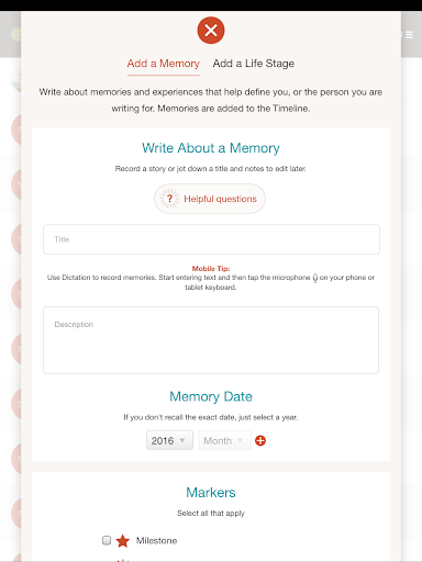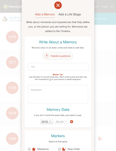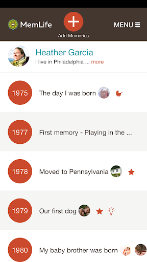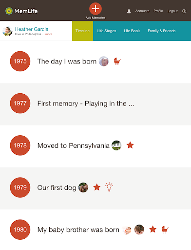 • When a great memory pops into your mind, go to MemLife and just jot it down. You can edit and add photos later to enhance your story.