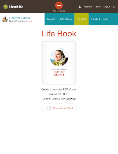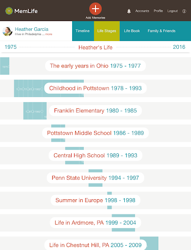 • Easily add memories and photos to a timeline, organize spans of time and when you're finished, export a Life Book (PDF).