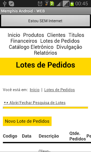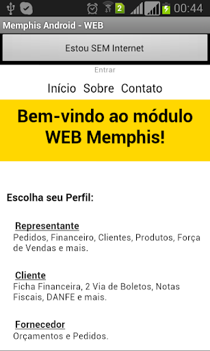 Memphis WEB Android É o sistema utilizado por representantes.