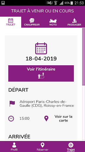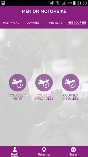 L'application mobile vous permet d'effectuer la réservation de votre trajet ainsi que le paiement de celui-ci en quelques clics, vous aurez alors la possibilité de contacter votre chauffeur taxi moto et de consulter les détails de votre course.