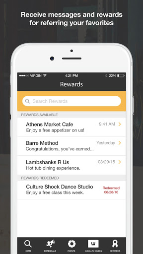 Not only do you receive points when you refer your favorite people and places but those businesses will see that you were the one doing it and have the opportunity to reward you for helping them.