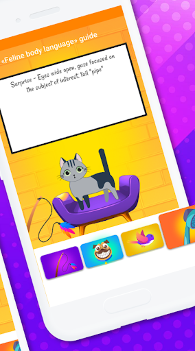 Also, this cat sounds game translator application can be an excellent helper to distract the cat, because, for example, at the veterinarian or during travel, cats are very frightened and stressed. 💉🚙 Thanks to interesting and familiar sounds and calls from this application, you can play with your pet, distract your kitty and make him forget about fear.🧶🧵