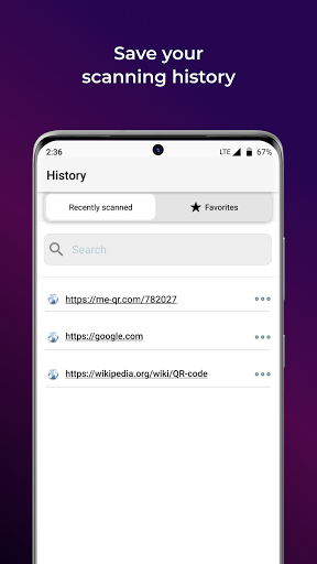 If you install our app, after you scanned the QR code - your link will be saved in the scan history. Now you can view scanned links anytime. Also, our application has the ability to add a link to “Favorites”.