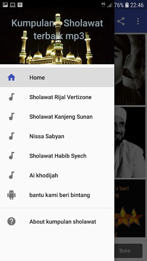 Aplikasi kumpulan lagu Sholawat Nabi MP3 online lengkap ini berisi berbagai jenis bacaan sholawat kepada Nabi Muhammad SAW yang dilantunkan dengan indah. Shalawat
