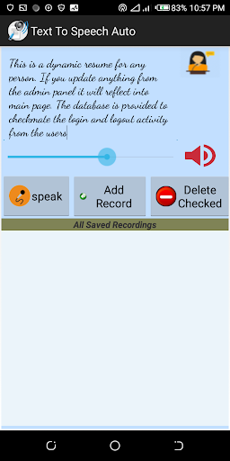 Whenever there is a need to speak, the dumb can open this application, enter some text, speak it out or play any related recording available.