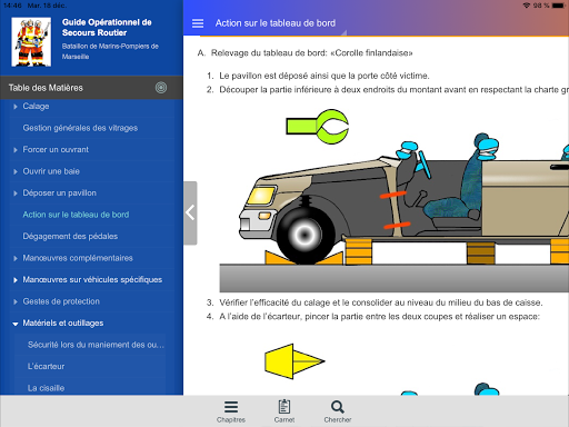 Die Anwendung "Road Retting Operational Guide" wurde von Ärzten und Erste-Hilfe-Trainer aus dem Marseille Marine-Feuerbataillon geschaffen.