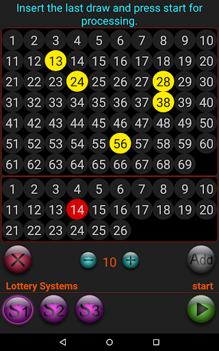 1- Insert the last draw, then a random set of numbers are generating and when there is a match then generates the next hypothetical set of numbers that may come up next.