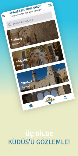 Thanks to the wonderful interface design of the Masjid Aqsa Guide application, you can visit the Jerusalem Masjid Aqsa from anywhere and get information down to the finest details. For those who cannot find a face-to-face visit, the best thing they can do in this market is to embark on a tremendous spiritual journey with the Masjid al-Aqsa Guide.