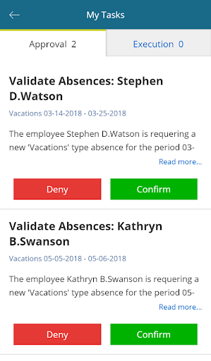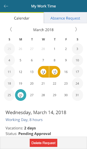• Manage your absences very quickly and easily by submitting, tracking or canceling absence requests.