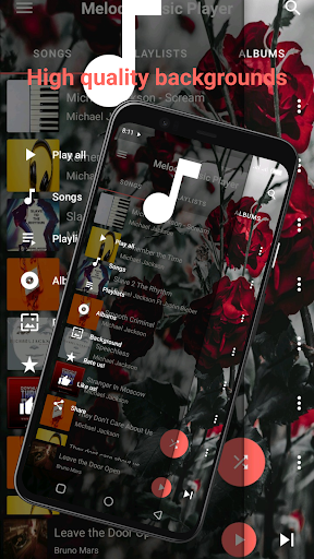 When a song is played, Melod Music Player changes the theme to match the song album using our smart background software