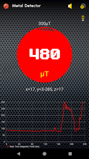 Metal Detector is an amazing application which can detects easily the presence of metal nearby by measuring the magnetic field value. This useful detector tool uses the magnetic sensor built-in your mobile device and shows magnetic field level in μT (microtesla). You know already that magnetic field level (EMF) in nature is about 49 μT (micro tesla) or 490 mG (milli gauss); 1μT = 10mG. If this metal detector app found any metal is, the value of magnetic field will increase automatically.
