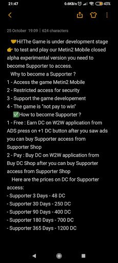 1 - Free : Earn DC on W2W application from ADS press on 1 DC button after you saw ads you can buy Supporter access from Supporter Shop ✅