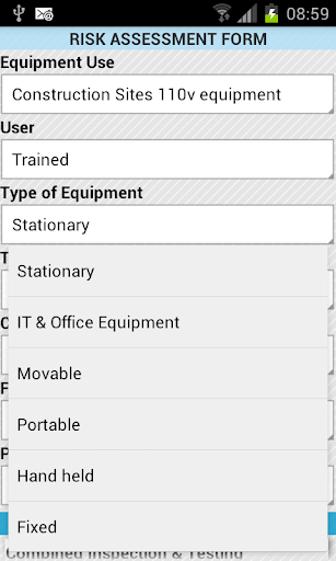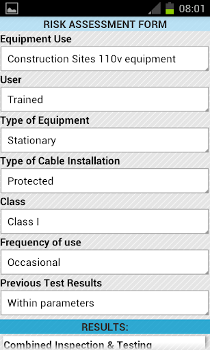 The application enables the user fast risk assessment evaluation based on the input information of the tested Equipment: