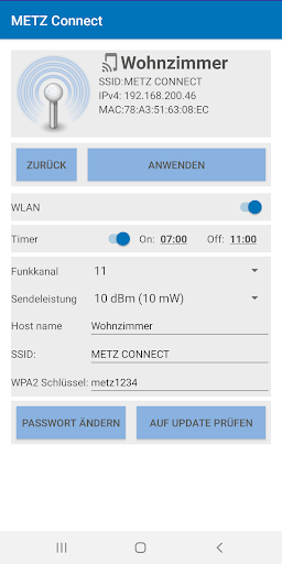 • SSID: Metz_Connect (nome do Wi-Fi -_Netzwerk)