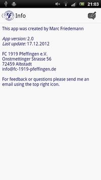 Umfasst News, Veranstaltungen, Vereinsinfo, Push-Benachrichtigungen sowie 1. Mannschaft, 2.Mannschaft und AH mit komplettem Kader, Spielplan und Tabelle.