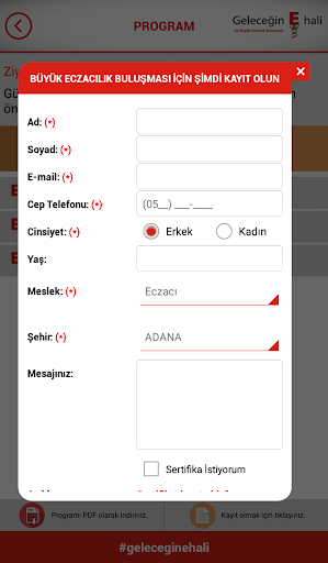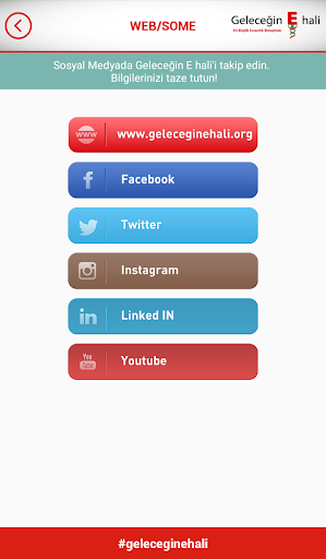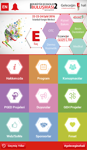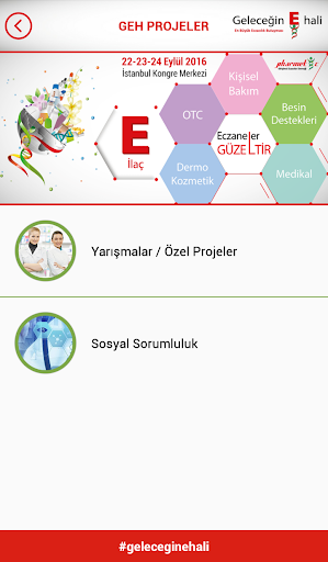 Geleceğin E hali Mobil Uygulaması ile etkinlik öncesi, sırası ve sonrasında tüm bilgilere, program akışına ulaşabilir, sponsor firmaların fırsatlarından anında haberdar olabilirsiniz. Uygulamayı Türkçe ve İngilizce olarak takip edebilirsiniz.