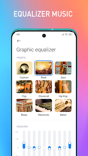 Music Player for Xiaomi Mi 10s enables you to adjust your sound tracks with a five-band equalizer and enjoy a powerful bass amplifier.