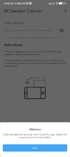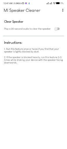 Mi Speaker Cleaner is a smart speaker Cleaner app that helps you to clear your speaker without any physical tool. It generates a high frequency audio that sharply clean your speaker and removes dust. It also help to clean water from your speaker. The app is light weight and free to use!