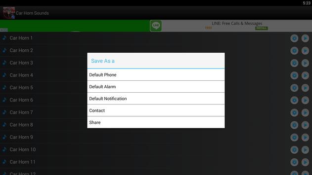 Do not forget that you can share Car Horn Sounds, use them as ringtones and notification, as well as alarm tone.