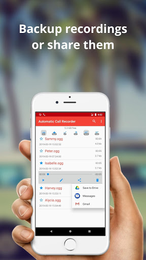You can then listen to your calls straight from the app. You can also save a backup on Google Drive or share them by email.