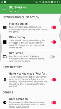 Tweaks for GO allows you tweak your phone when playing Pokémon™ GO! It allows you to save battery when playing Pokémon™ GO by tweaking your settings and by pseudo locking your phone with a black overlay that will make Pokémon™ GO keep running even with the screen dimmed or blacked. With this app you can even put the phone in your pocket while playing Pokémon™ GO.