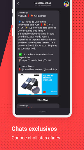- आप ब्रांडों, दुकानों, समूहों, हैशटैग, मुफ्त चीजों के आधार पर चोलोस संग्रह की सदस्यता ले सकते हैं ... और कॉन्फ़िगर करें कि आप कैसे आपको सूचित करना चाहते हैं कि आप जो रुचि दिखाई देते हैं।> Br> - समूहों द्वारा: स्वाद, शौक, शौक, जीवन शैली के आसपास छूट का संग्रह ...
