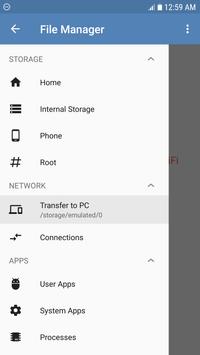 ● Network File Manager Transfer files with FTP Server from phone to PC. All you have to do is open the IP address in browser and all your files on the phone are easily accessible. You can also share files from your phone using bluetooth, wifi direct other social networking apps etc. You can also browse FTP/ FTPS connection now.