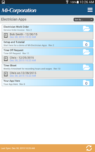 Electrical maintenance, service, installation and repair experts don’t have time for paperwork. While on the go, access work orders, time sheets, and time off request forms from Mi-Electrician Apps on a phone or tablet. View work order details, take photos, scan barcodes, dictate work completed, capture signatures and automatically send completed orders back to headquarters—right from your app. Time is money. With Mi-Electrician Apps, create more time for you and your customers and spend less time on paperwork.