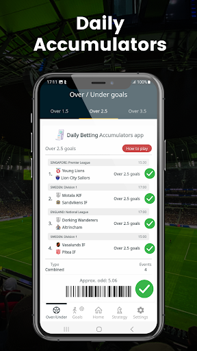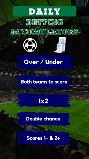 Daily Betting Accumulators is a football betting predictions app that offers instruments that increase your win rate and guide you in the process of selecting a bet, following a betting strategy, and creating your own betting slips.