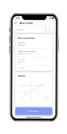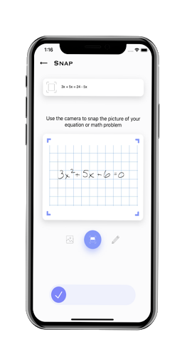 SnapMath -Snap Pictures and Solve Doubts Instantly will give you the answer to any math question by simply taking a photo of it. With millions of users and many problems solved, math way is the world's smartest math calculator app. With a smart calculator, you just need to enter the formula and the equation calculator will give you answers automatically. Simply point your camera toward a math problem and photo calculator will magically show the result with detailed step-by-step instructions. The calculator will give you the answer to any math question by simply taking a photo of it. The calculator is a great way to check your homework, study and learn math. Supports arithmetic, integers, fractions, decimal numbers, roots, algebraic expressions, linear equations/inequalities, quadratic equations/inequalities, absolute equations/inequalities, systems of equations, logarithms, trigonometry, exponential and logarithmic functions, derivatives and integrals, graphs and many more.
