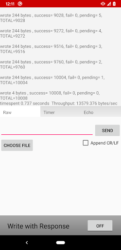Scan and connect LE device. Transfer text typed in the app to peripheral device.