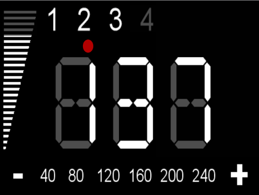 For Start/Stop touch the center of the screen.The Click and the Bell are adjustable for styles from 1beat to 4 beats. In setting 1 you only have a click. In the settings 2 to 4 you have a bell on 1 and a click on the other beats. The tempo is adjustable from 40 to 240 bpm. On the left side you control the volume.