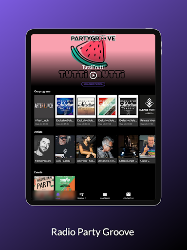 Party Groove est une jeune radio qui écoute avec enthousiasme les jeunes et " Pas "Le meilleur de la musique de danse, dans ses facettes les plus" alternatives "telles que House, Chill Out et R'n'B.