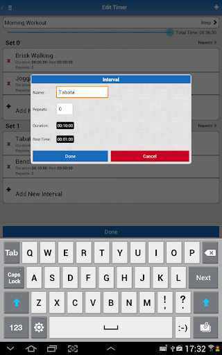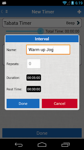 Android Interval Timer app is designed to create any kind of interval timer. All values are configurable so this app can be used to create Tabata Timer, HITT Timer, Boxing Timer, Sprint Training Timer.