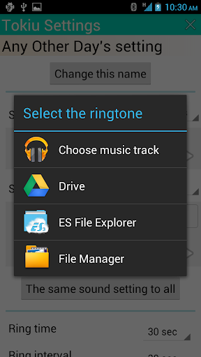 "Every day", "Once", "Day of week", "Weekdays", "Holiday".