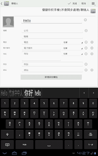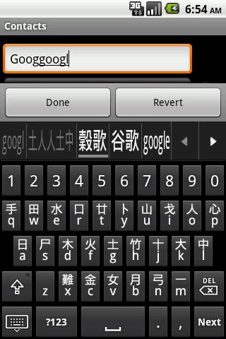 Mixed Chinese keyboard (混合中文鍵盤) is an implementation of soft keyboard for the Google Android mobile operation system. It provides an interface for the entering of traditional and simplified Chinese characters on Android devices, by means of the Hong Kong Government Cantonese Romanisation convention (香港政府粵語拼音), Cangjie (倉頡), Simplified Cangjie (簡易/速成) and English-Chinese dictionary look up.