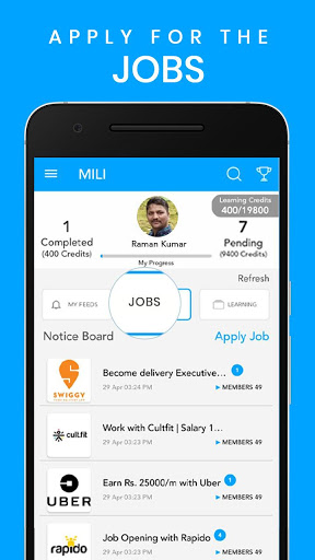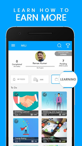 MILI App helps end users to acquire the job skills and find a job with our partners. At MILI, we aim to make every idle moment, a fun learning moment and impact India’s recruitment process for the unorganised jobs
