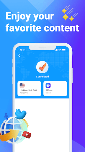 High speed and unlimited connection Our automatic connection service will automatically detect your location and connect you to the fastest server. You can enjoy super fast VPN with just one tap.Download or stream any content from any of our servers, anywhere on the planet.-Easy to use One-click connection. Automatically select the nearest and fastest server. No need to register, download and connect to enjoy high-speed VPN proxy.
