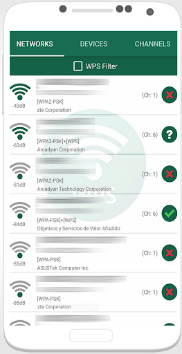 those with a green tick are most likely vulnerable, have the WPS protocol enabled and the connection pin