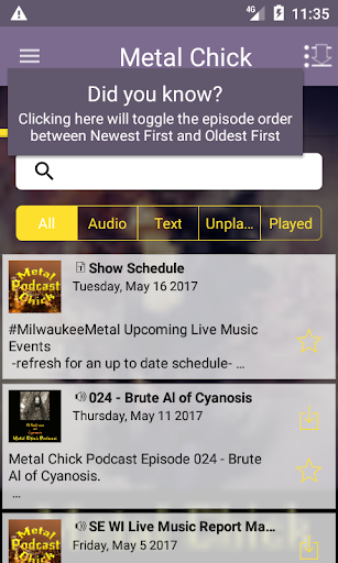 With this app you are always connected to the latest episodes and the show. Quickly star episodes and save them to a list so you can easily enjoy them over and over! This app has a Car mode too! Rotate your phone to display larger playback controls. It is the best and most convenient way to access the Milwaukee Metal Chick.
