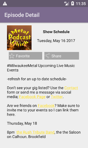 * Quick access to all the contact methods for the show like call, email, web, Facebook, and Twitter