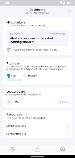 Mindmarker is a cloud based training reinforcement program which is used to improve your workforce. The Mindmarker program automatically sends a variety of types of messages (videos, photos, questions, emails or other files) to a group of users at pre-set dates and times. These messages are called Mindmarkers and often include questions. This App will allow users to receive the Mindmarkers and monitor their progress and performance in the training program. Visit www.mindmarker.com for more information.