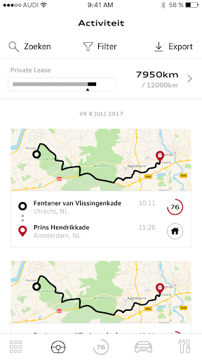 यहां आप अपने सभी यात्राओं को एक सिंहावलोकन में पाएंगे और बेहतर ड्राइव प्रशासन, व्यवसाय और निजी किलोमीटर के साथ सख्ती से अलग हो जाएगा। वोक्सवैगन लीजिंग के अपने निजी लीज अनुबंध को लिंक करें उदा। ऐप पर और आपको अपने निजी लीज किलोमीटर में भी आसान अंतर्दृष्टि मिलती है।