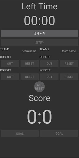 3. 초기화 버튼을 누르면 모든 시간정보와 점수정보 삭제 및 기능 비활성화(경기시작 제외)