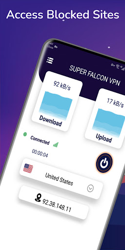 Super Falcon VPN is a free, secure and unlimited VPN for Android users.It offers over 6700 servers worldwide, guaranteeing you a lightning-fast connection. You can easily unblock websites, apps, protect your online privacy, stream your favorite shows and improve gaming experience. You will be able to surf anonymously and freely...