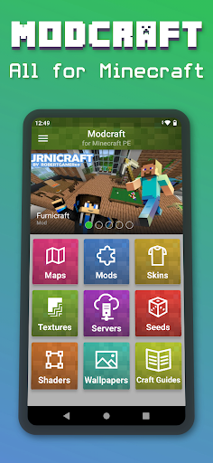 ModCraft is a free and user-friendly application launcher and addon manager for Minecraft PE where you will find all the latest maps, mods, textures, seeds, servers, wallpapers, skins, add-ons, and crafting guides.