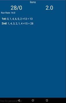 This app allows users to keep score for one cricket match at a time. It is a very simple app to use where you do not put in information about the batsman or the bowler. You simply start recording each ball and the app will follow. It will prompt you when you need to interact with it.