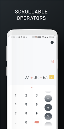 - Scrollable Operator Column extends access to other occasionally used operators like SQUARE ROOT, PERCENTAGE & BRACKETS while keeping them out of the sight when not in use.