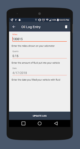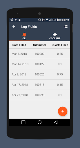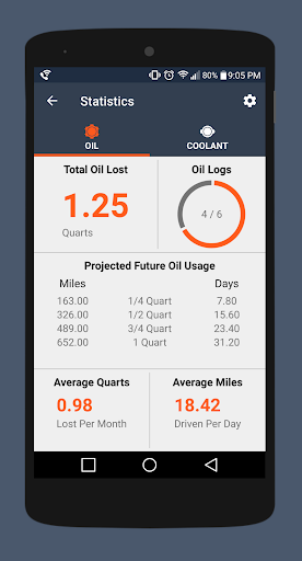 Enter data entries when you top off your oil or coolant so you can keep track of your vehicle's fluid use.